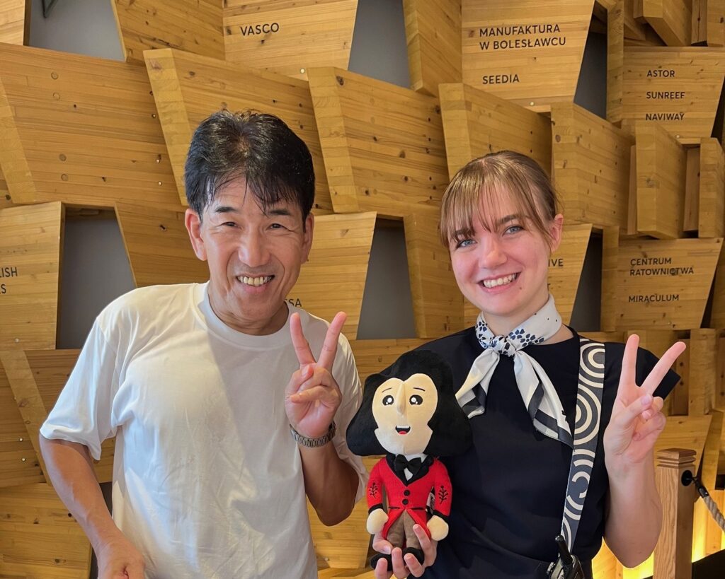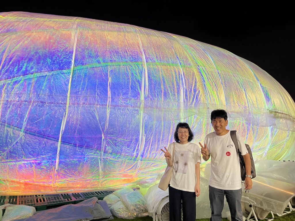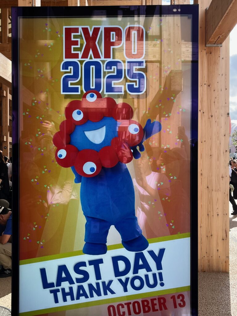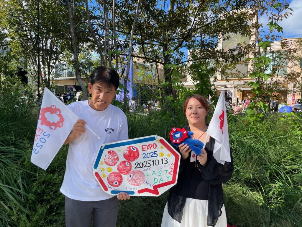 最終日の記念にと、ミャクミャクを持った女性にお願いして一緒に写ってもらいました
