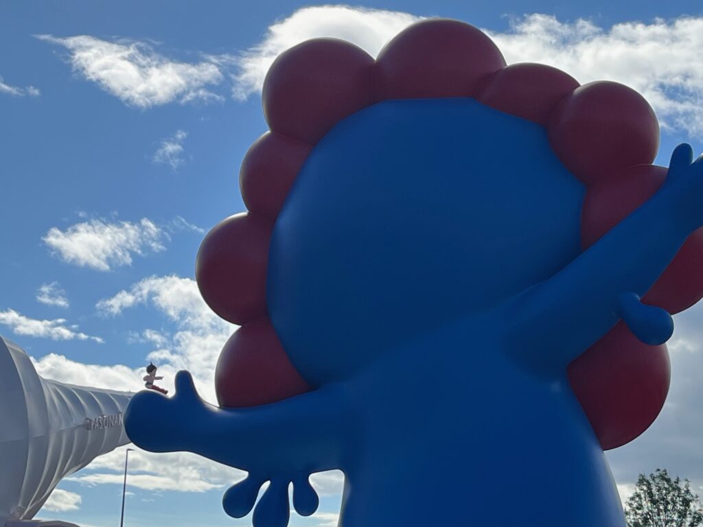ミャクミャクの手の上にアトム
