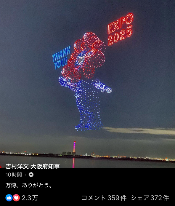 ↓吉村知事のFacebookの画像はよこから