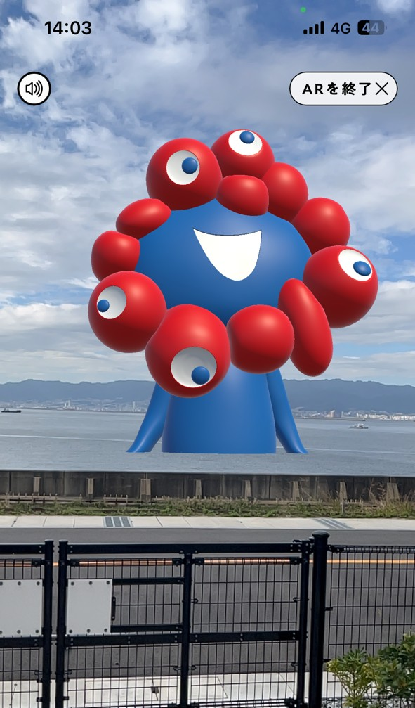 写真ではわかりにくいですが、ミャクミャクが乗っています