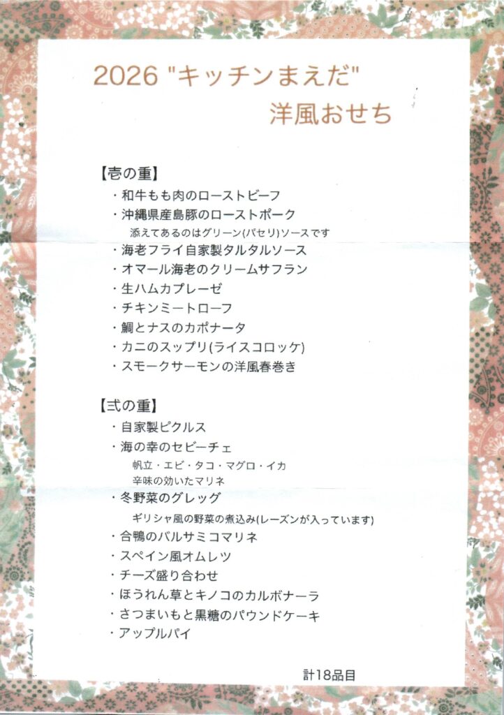 おせちは、阿倍野区西田辺の「キッチンまえだ」の洋風おせちです。