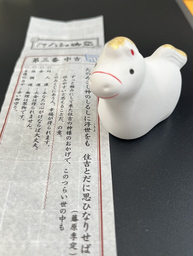 今年のおみくじは干支おみくじ(お馬さんの陶器の中におみくじが入っています)にしました。