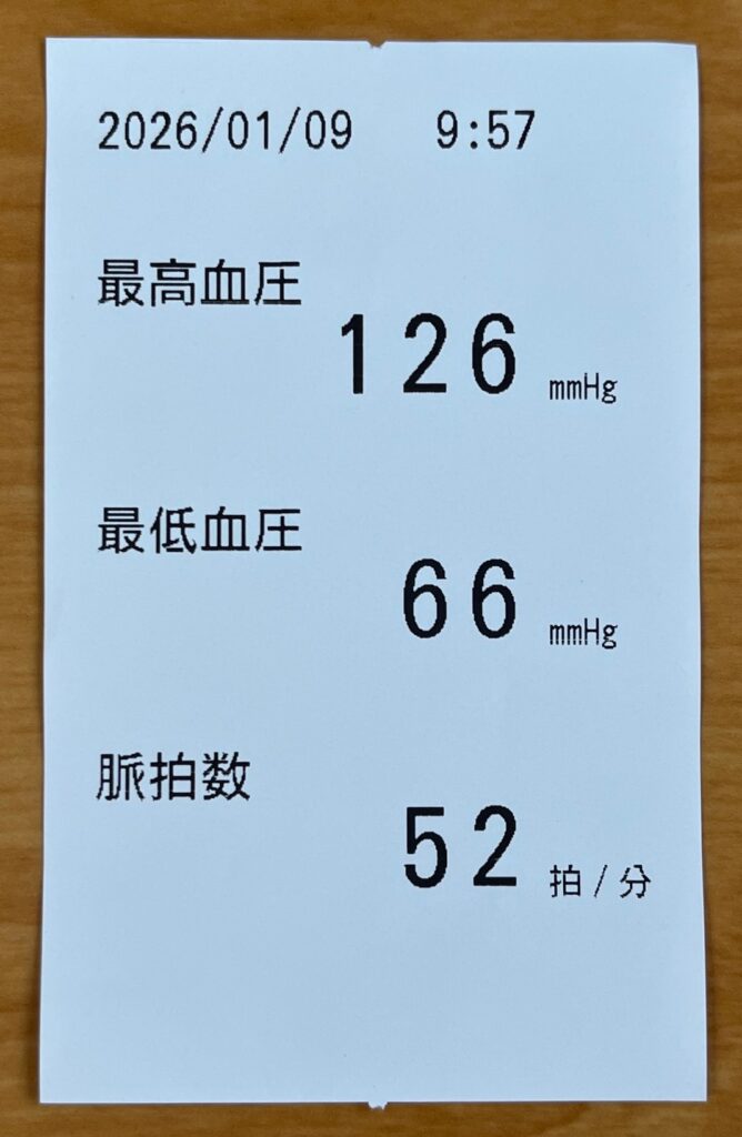 血圧は落ち着いています。上が128→113→126、下が75→65→66、脈拍55→47→52/分でした。