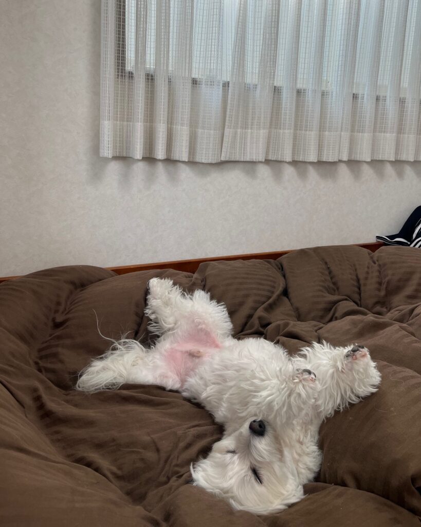 家で仕事しているときに横で寝ているのも可愛いくて、お昼になるとムクっと起きておやつをねだります。セラピー犬をやってくれています。