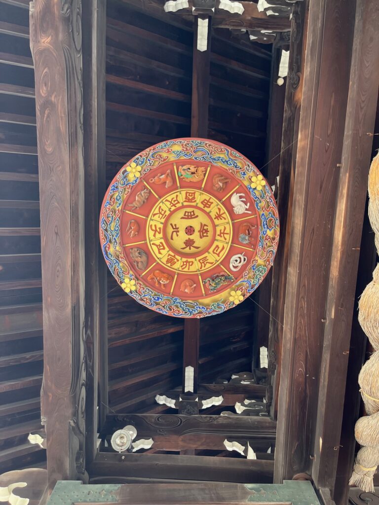 門の天井に煌びやかに付いていたので撮影しました。
